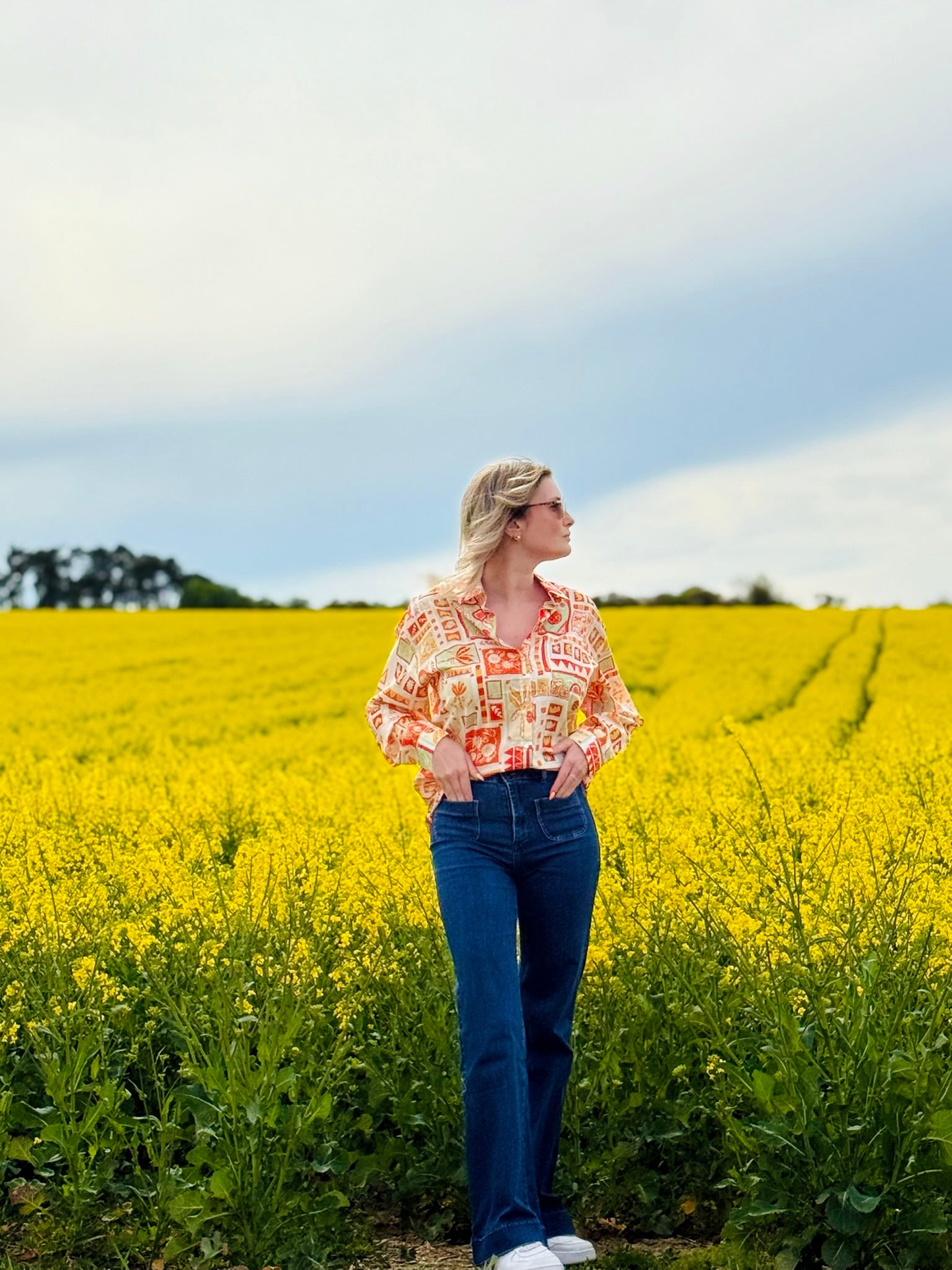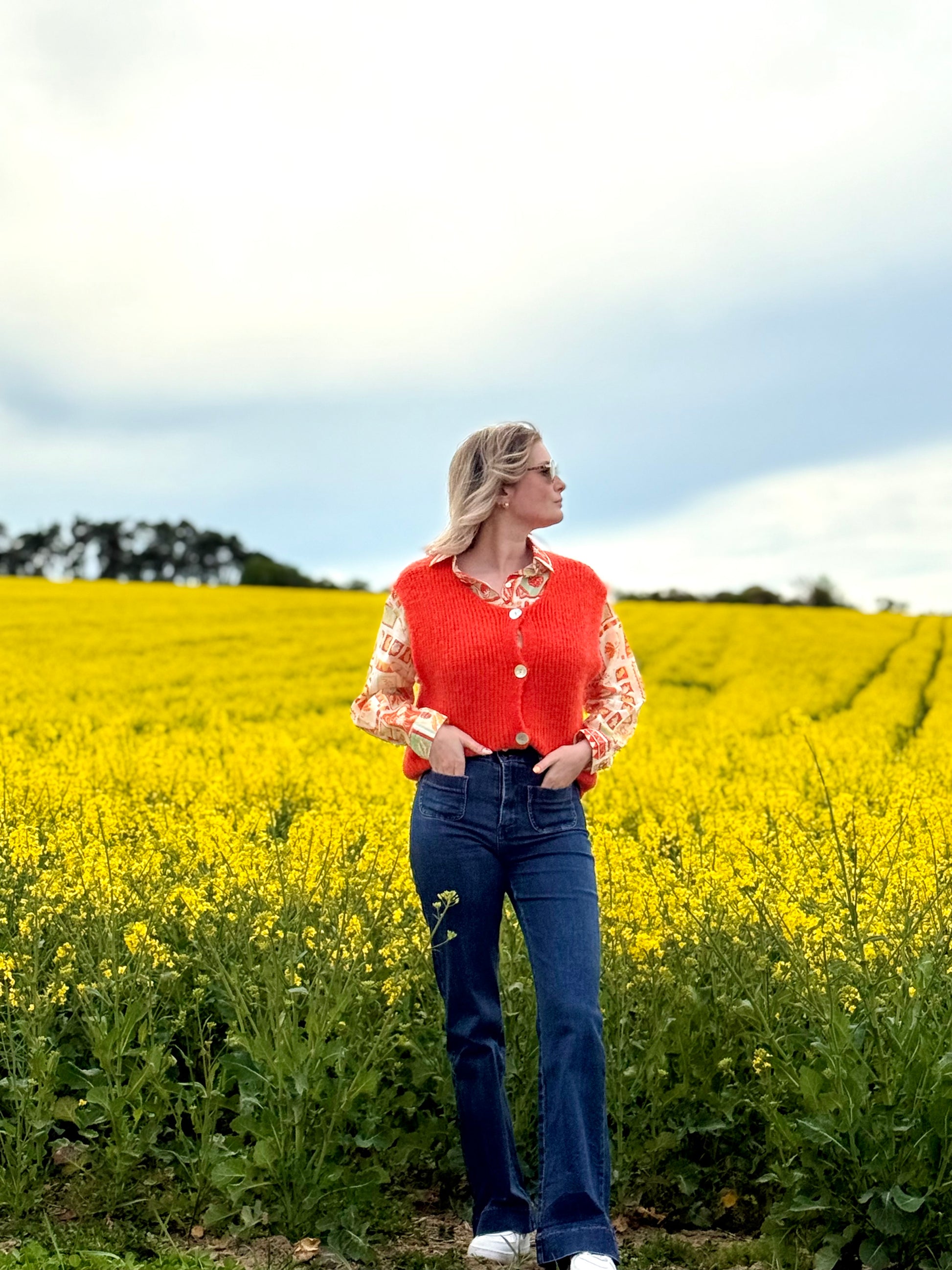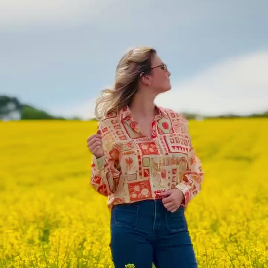 Chemise aux motifs tropicaux 🌴🦜🍍 pouvant se porter seule ou parfaite sous un gilet sans manches pour raviver les couleurs de celle-ci.